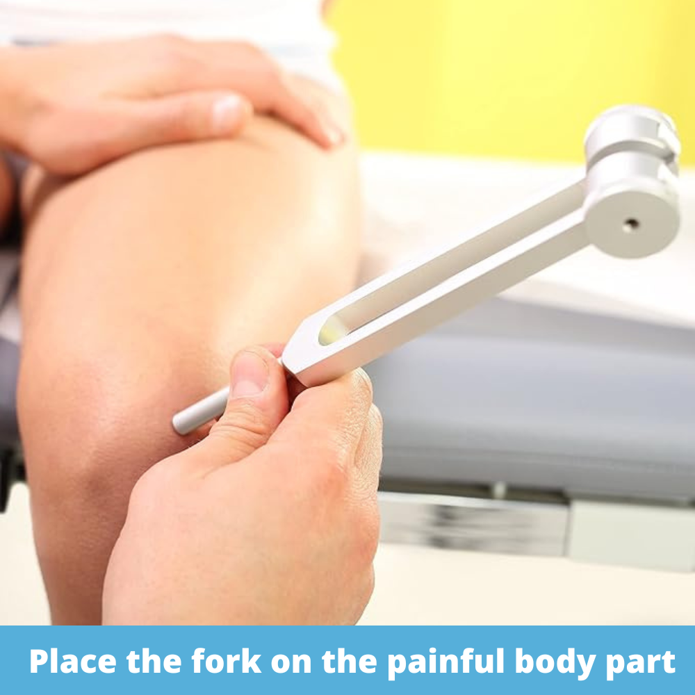 Simply place a fork on the body part you want to heal. Tap a tuning fork gently to create vibrations and hold it for a few minutes.